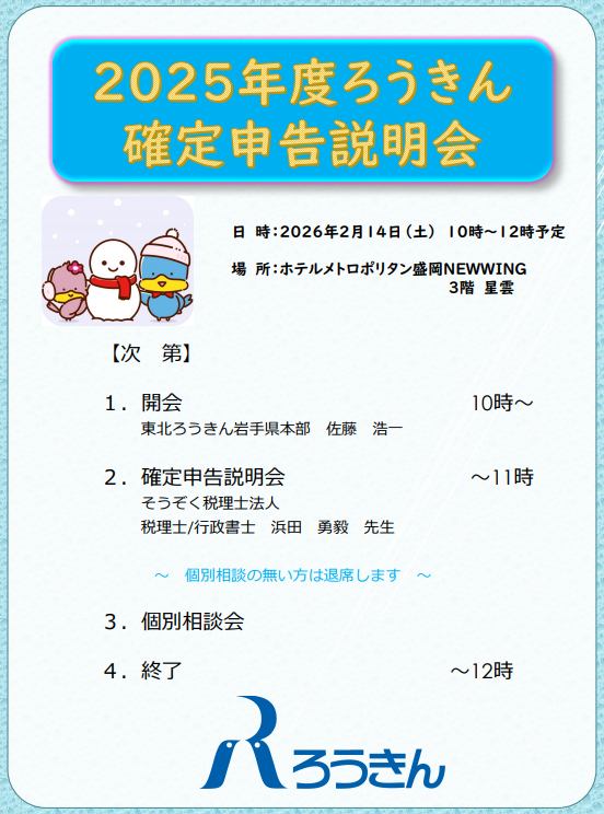 >セミナー講師 「確定申告説明会~住宅ローン減税~」東北労働金庫